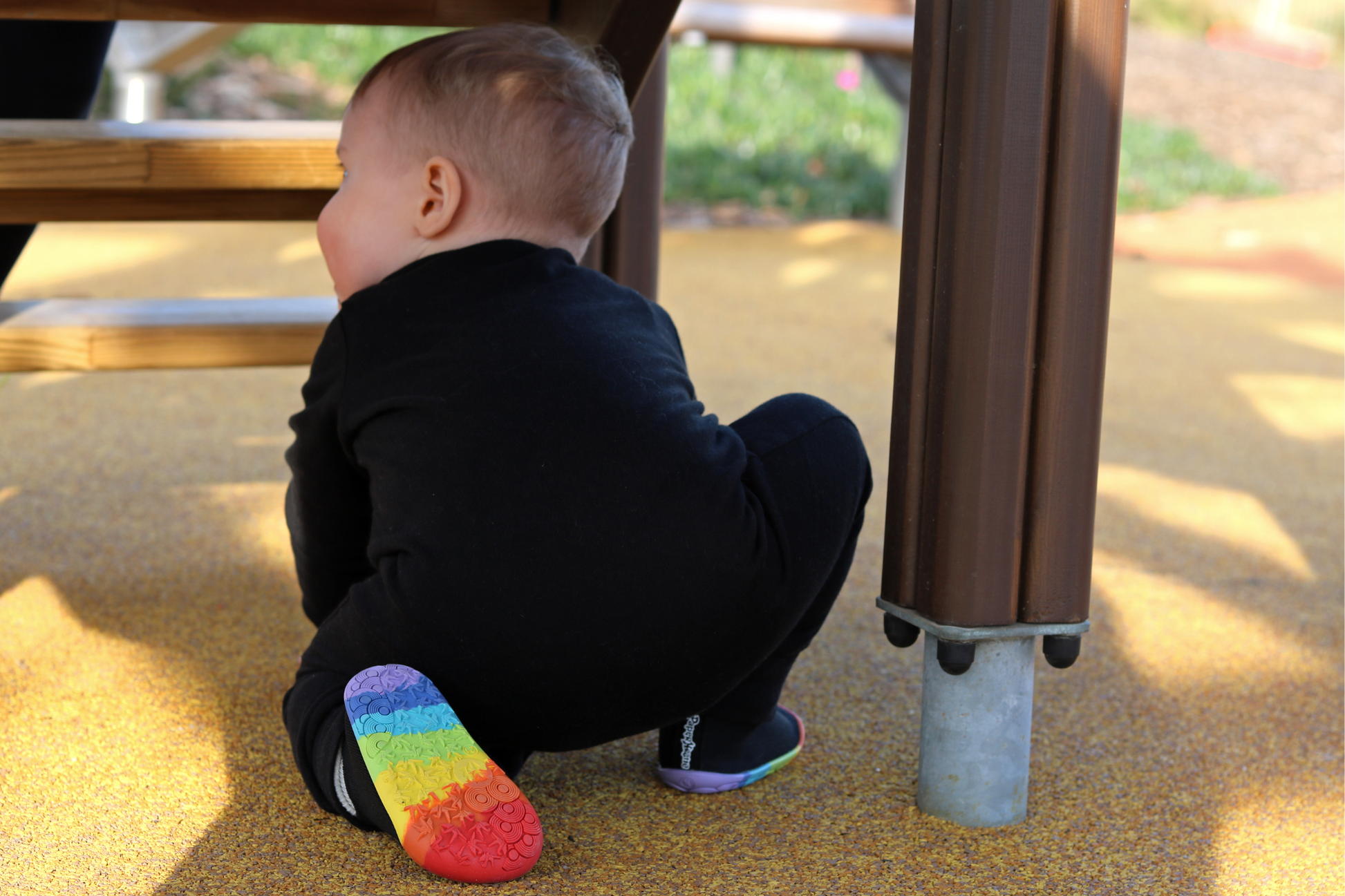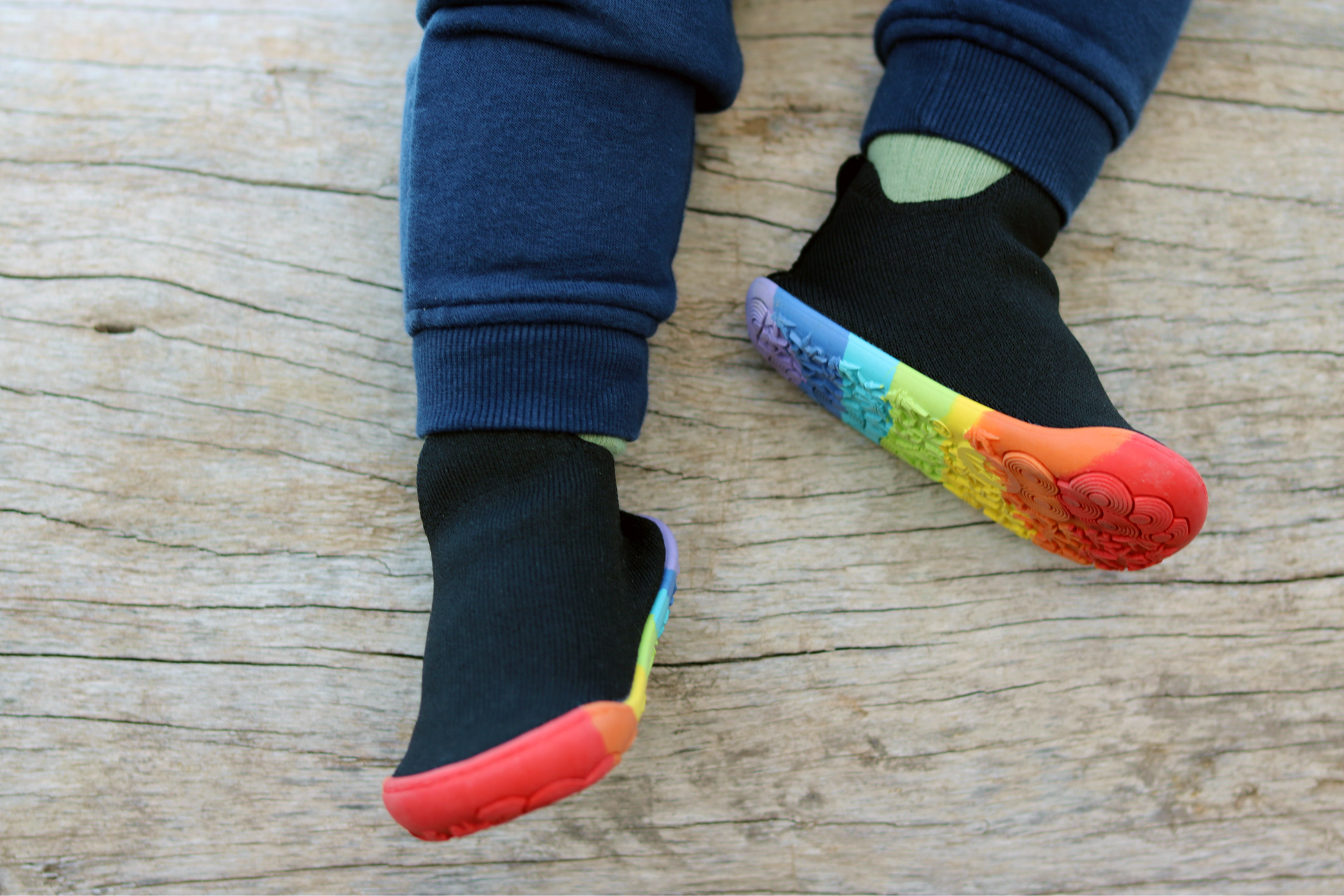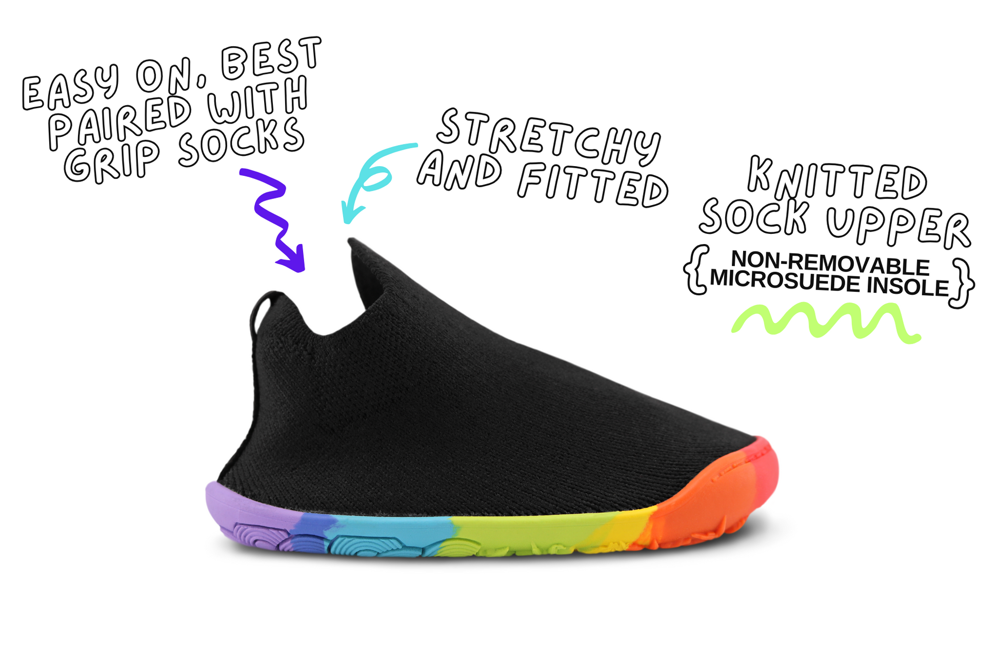 Crafted with our foot-shaped design and flexible construction, they're made from a soft black stretchy knit, and a micro-suede lined (thin) foam inner soles, your little ones feet will feel happy (and healthy) all day long!